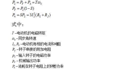 目前國(guó)內(nèi)各類(lèi)礦山等提升機(jī)大都采用交流繞線(xiàn)式異步電動(dòng)機(jī)轉(zhuǎn)子串電阻方式調(diào)速方案,使用交流接觸器改變轉(zhuǎn)子電阻來(lái)進(jìn)行速度段的切換。對(duì)于繞線(xiàn)式電機(jī),無(wú)論在起動(dòng)?制動(dòng)還是調(diào)速中,采用轉(zhuǎn)子串電阻方式均會(huì)帶來(lái)電能損耗。這種損耗隨著轉(zhuǎn)速的降低,轉(zhuǎn)差率S的增大而增大。繞線(xiàn)式電機(jī)的功率關(guān)系為: