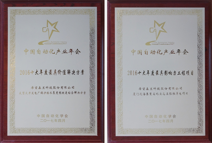 中國(guó)自動(dòng)化領(lǐng)域年度獎(jiǎng)項(xiàng)評(píng)選現(xiàn)場(chǎng),希望森蘭科技股份有限公司榮獲“2016中國(guó)自動(dòng)化領(lǐng)域十大年度企業(yè)”,公司“大型火力發(fā)電廠鍋爐給水泵變頻改造綜合解決方案”被評(píng)為“2016十大年度最具價(jià)值解決方案”,此外,“廈門(mén)遠(yuǎn)海集裝箱碼頭高壓船舶岸電項(xiàng)目”獲得“2016十大年度最具影響力工程項(xiàng)目”三項(xiàng)重要大獎(jiǎng)。